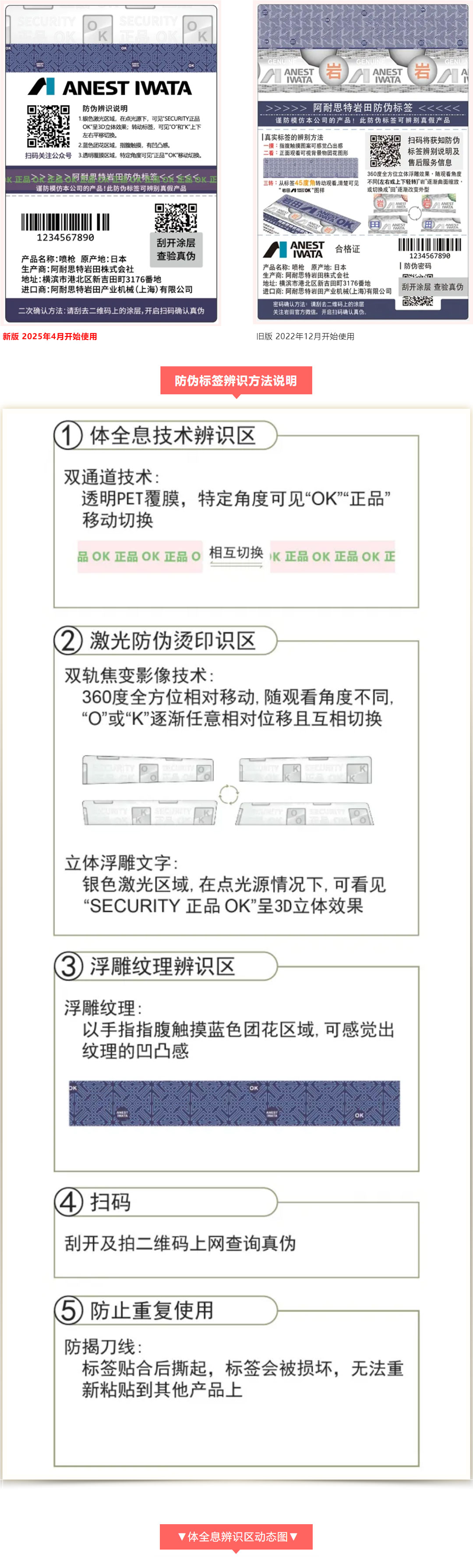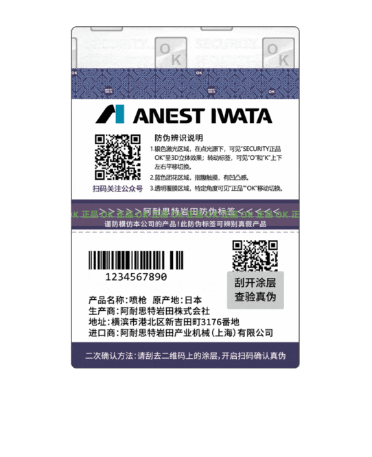 2025年4月正式开始使用第12代防伪标签,新版标签采用先进激光防伪烫印技术,实现了字体的动态变化,更有全息技术pet覆膜,相互切换体现不同效果字体。新版标签较旧版尺寸缩小,但安全性再次升级。 标签换代过程中,新旧标签共存,请各位用户放心使用。